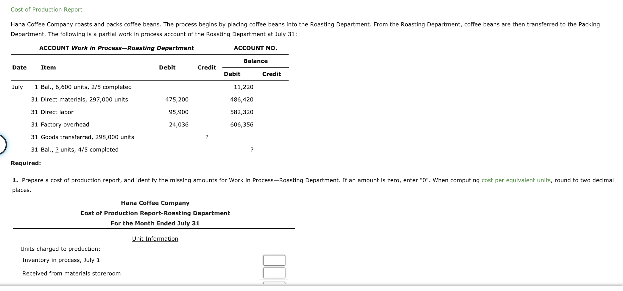 Solved 1. Hana Coffee Company Cost of Production Report Hana Coffee Company Cost Of Production Report Based on the above data, determine each cost listed below. Hana coffee company roasts and packs coffee beans. enhanced document preview: The process begins by placing coffee. Hana coffee company roasts and packs coffee beans. Round cost per equivalent unit answers to the nearest cent. the process begins by placing coffee beans into the roasting department. here’s. Hana Coffee Company Cost Of Production Report.